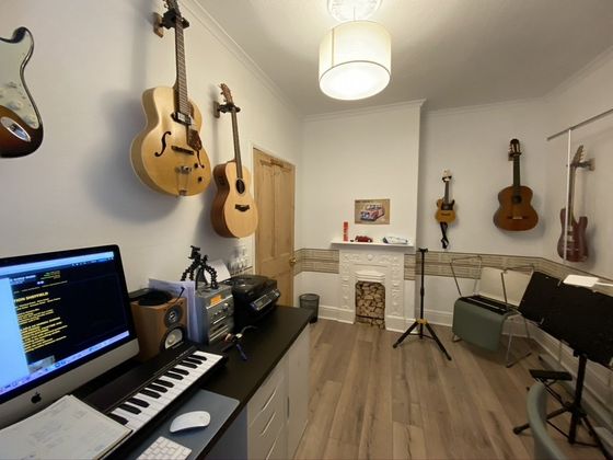 Louis is rehearsing for his GCSE guitar ensemble performance exam.
